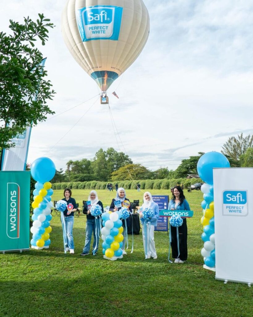Di bawah cahaya pagi di Farm Fresh, UPM Serdang, belon udara panas berwarna-warni terapung cantik di atas ladang hijau. Di sinilah Safi Malaysia, jenama penjagaan kulit halal No.1, melancarkan produk terbaru mereka: Safi Perfect White 3X Advance Watery Light Serum Sunscreen SPF 50+ PA++++. Majlis pelancaran ini direka khas untuk menonjolkan inti pati produk: ringan, berseri, dan penuh semangat.